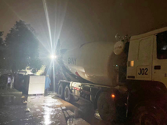 當日,我們來到了上饒市中醫(yī)院圍墻砌筑工程的施工現(xiàn)場。挖掘機、泵車、攪拌車……這些平日里聽起來冷冰冰的詞匯,在上饒近日驟降的寒冷氣溫中顯得格外“凍人”。天空中斷斷續(xù)續(xù)飄著雨,管理員和工人們身披雨衣,正在為按要求、保質量盡快完成砌筑工作而不舍晝夜,緊張的忙碌著。