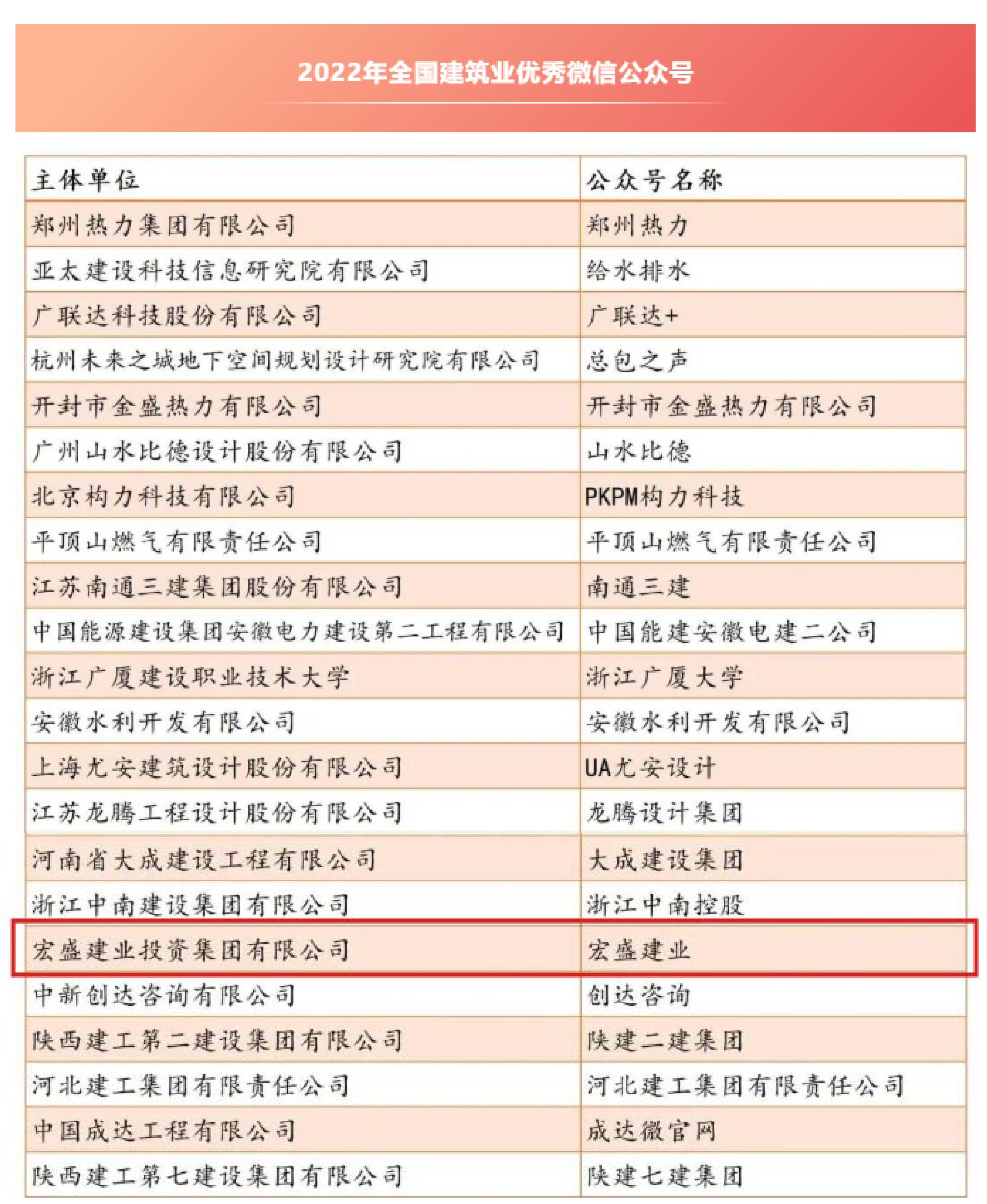 喜報|宏盛建業(yè)榮獲“2022年全國建筑業(yè)優(yōu)秀微信公眾號”