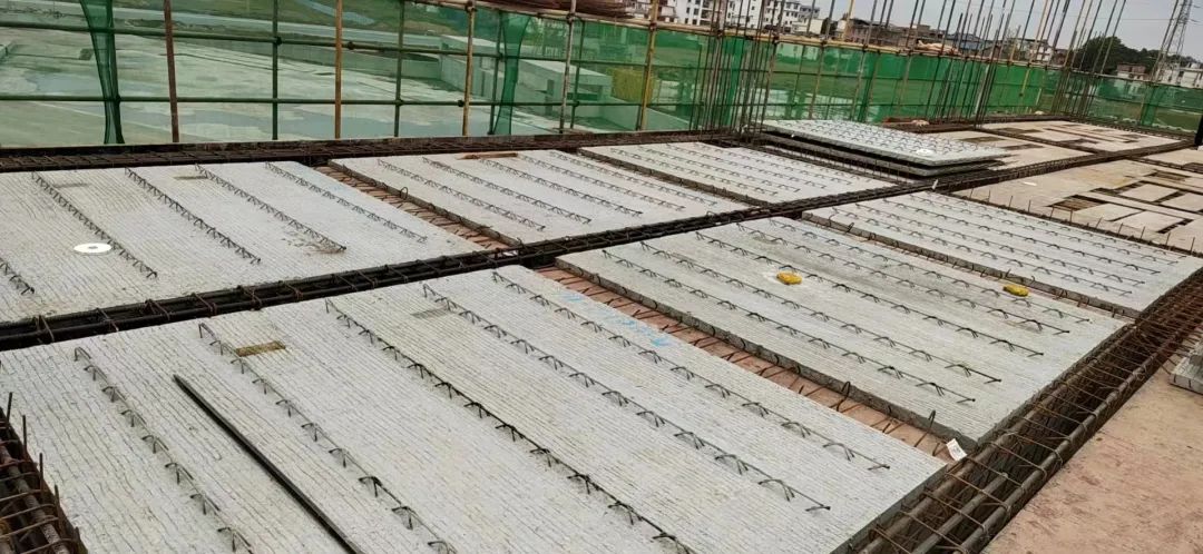 本次在贛州經(jīng)開區(qū)文化藝術(shù)中心項(xiàng)目進(jìn)行裝配的是預(yù)制疊合樓板。疊合板按照雙向受力模型進(jìn)行設(shè)計(jì),不僅整體剛度更好,承載力更高;而且最大程度節(jié)約了傳統(tǒng)樓板木模的使用,改良了樓板支模的施工工藝,縮短了施工周期,提高了施工的質(zhì)量和精度,改善了施工環(huán)境,避免了施工可能造成的噪音、揚(yáng)塵等環(huán)境污染,也更符合綠色施工的節(jié)能、節(jié)材、節(jié)水、節(jié)地、環(huán)保等要求。