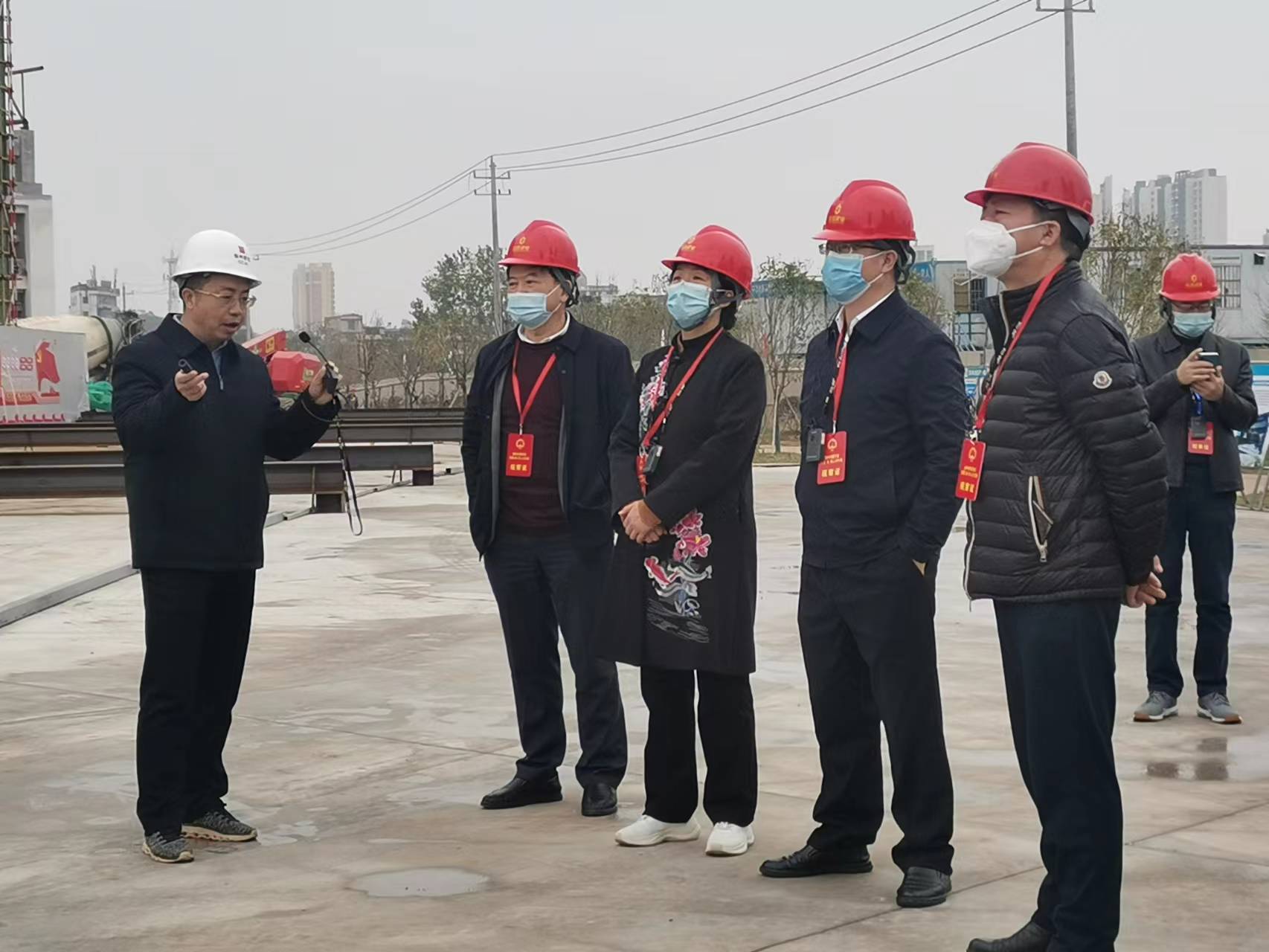 在工地現(xiàn)場,章貢區(qū)人大常委會黨組書記、主任黃華通過聽取匯報,實地查看,并詳細了解了項目概況、工程進展、質(zhì)量控制及工地安全文明管理措施等情況,對于項目精心組織、科學(xué)施工、智慧建造等方面的經(jīng)驗做法,并給予充分肯定。