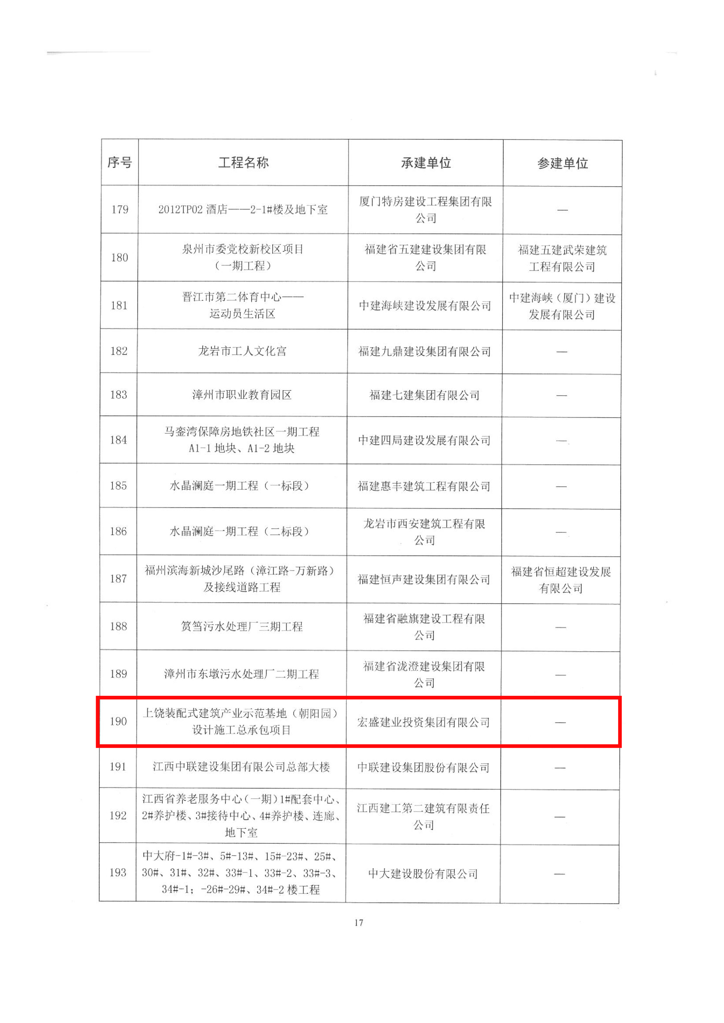 導(dǎo)讀:近日,山東省建筑業(yè)協(xié)會魯建協(xié)(2022)32號文件中公布了關(guān)于表彰2022年度“華東地區(qū)優(yōu)質(zhì)工程獎(jiǎng)”的通知。宏盛建業(yè)投資集團(tuán)承建的“上饒裝配式建筑產(chǎn)業(yè)示范基地(朝陽園)設(shè)計(jì)施工總承包項(xiàng)目”獲評2022年度“華東地區(qū)優(yōu)質(zhì)工程獎(jiǎng)”榮譽(yù)稱號。
