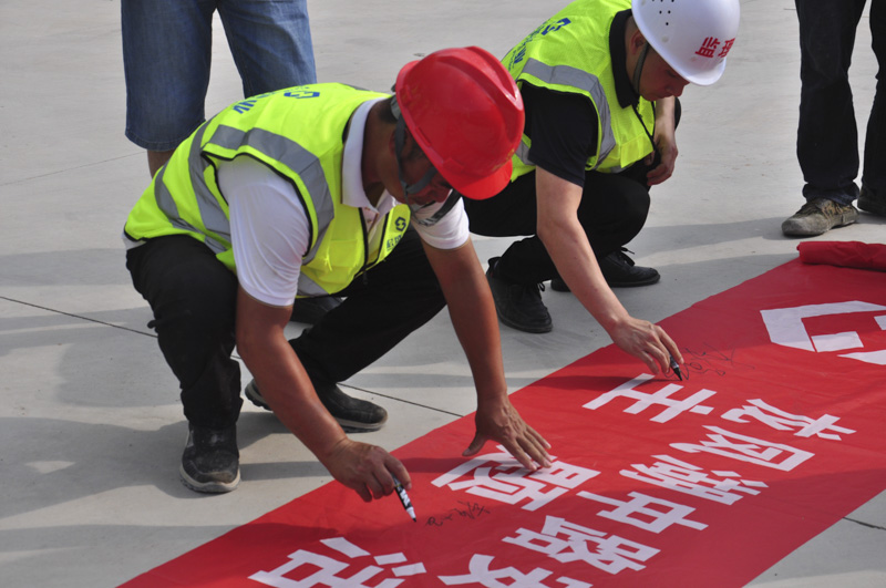 各項(xiàng)目部陸續(xù)在6月10日前開展安全月啟動(dòng)會,在項(xiàng)目現(xiàn)場懸掛與安全月主題相關(guān)的條幅,邀請項(xiàng)目管理人員、甲方、監(jiān)理代表、班組現(xiàn)場負(fù)責(zé)人,積極交流安全管理及安全標(biāo)準(zhǔn)化推進(jìn)中的先進(jìn)做法、經(jīng)驗(yàn),積極宣傳安全生產(chǎn)文化,普及安全知識,并逐步舉行安全月主題橫幅簽字儀式、安全承諾宣誓等活動(dòng)。