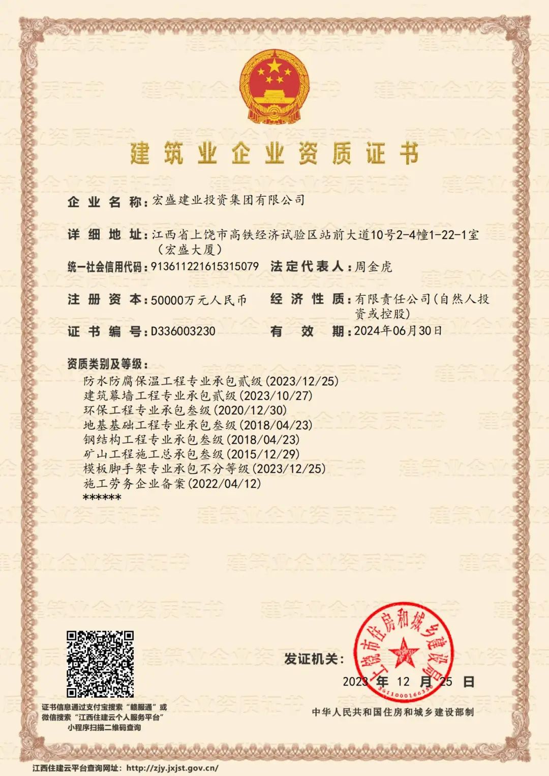 這一年,集團(tuán)成功獲得了“房屋建筑工程監(jiān)理甲級”、“市政公用工程監(jiān)理甲級”、“防水防腐保溫工程專業(yè)承包貳級”、“建筑幕墻工程專業(yè)承包貳級”、“模板腳手架專業(yè)承包不分等級”等5項(xiàng)資質(zhì)。作為中國建筑行業(yè)的大型集團(tuán)化特級企業(yè),此次雙重資質(zhì)的獲得是公司在增加資質(zhì)范圍和拓展業(yè)務(wù)上取得的重要成果,對于提高企業(yè)在市場競爭中的地位具有極其重要的意義,也為企業(yè)的長遠(yuǎn)發(fā)展奠定了堅(jiān)實(shí)的基礎(chǔ)。