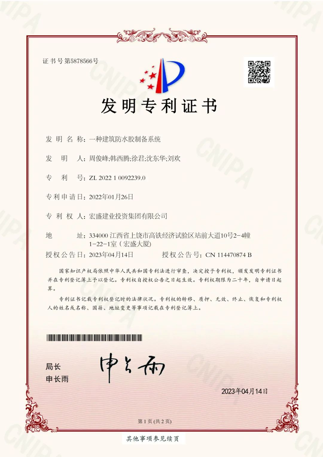 這一年,集團(tuán)發(fā)明專利《一種建筑防水膠制備系統(tǒng)》、《一種建筑用鏟灰設(shè)備》 經(jīng)過國家知識產(chǎn)權(quán)局審查,正式獲得發(fā)明專利。