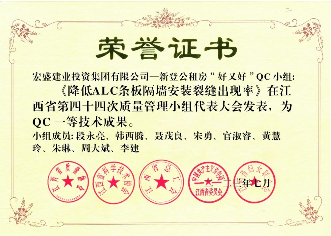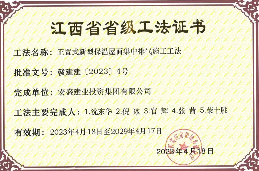 這一年,集團(tuán)《正置式新型保溫屋面集中排氣施工工法》獲評省級工法,同時(shí),獲QC一等技術(shù)成果4項(xiàng)、二等技術(shù)成果3項(xiàng)、三等技術(shù)成果4項(xiàng)。