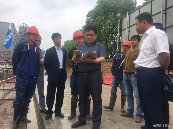 6月16日,縣委書記饒清華等領(lǐng)導(dǎo)前往施工工地,檢查梅雨季降雨對施工的影響,現(xiàn)場聽取了面對強(qiáng)降雨所采取的防范措施,稱贊了宏盛建業(yè)作為特級資質(zhì)企業(yè)所展現(xiàn)的及時(shí)處理能力。