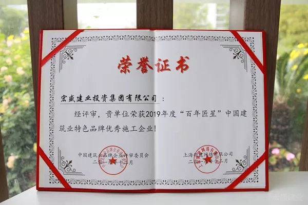 宏盛建業(yè)獲評2019第四屆“百年匠星”中國建筑業(yè)特色品牌企業(yè)
