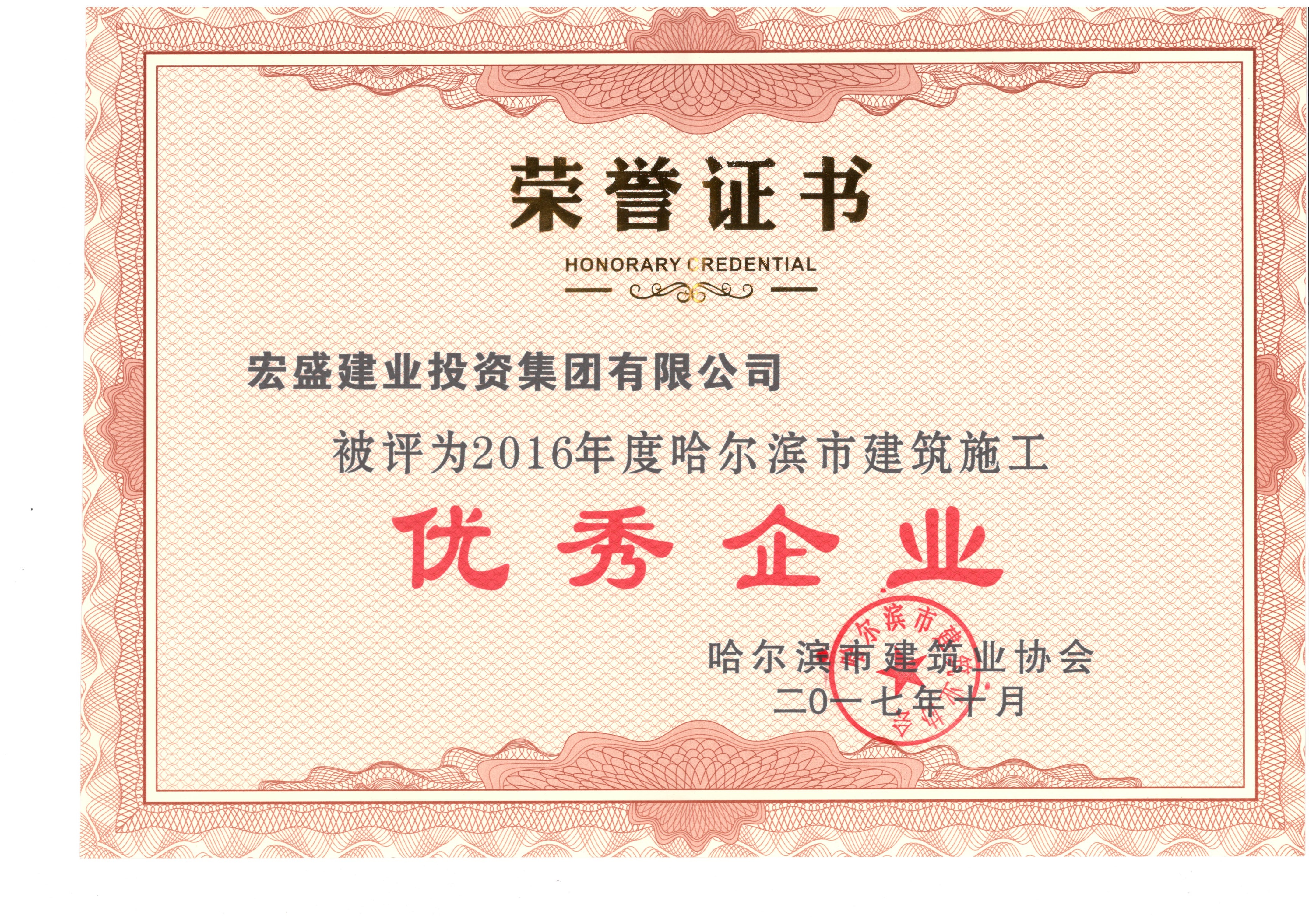 2016年度哈爾濱優(yōu)秀企業(yè)