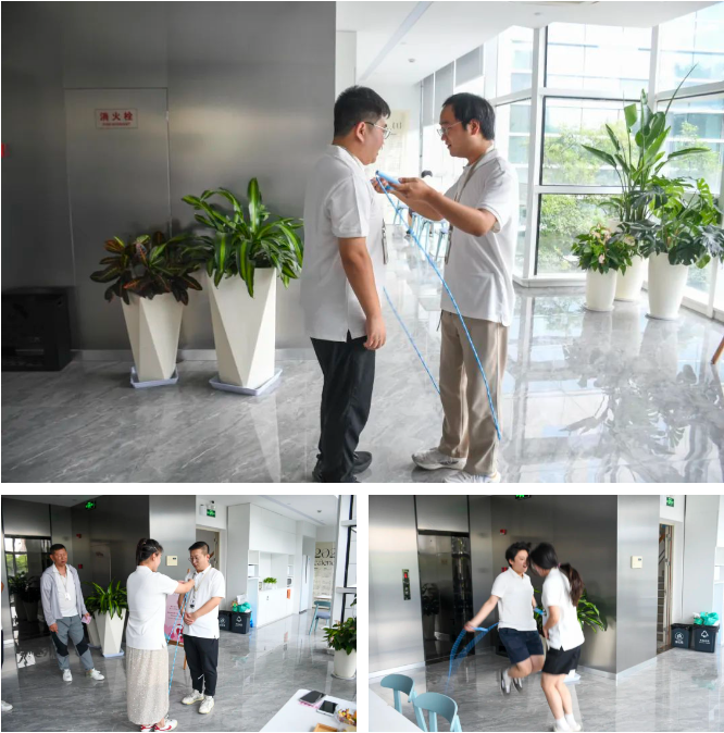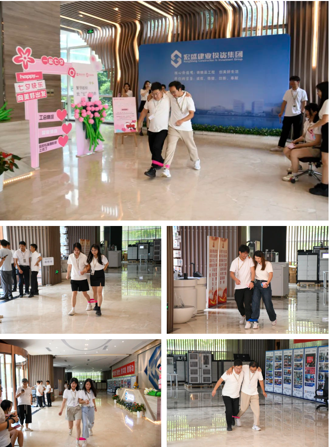 一樓大廳內(nèi)設(shè)置了兩人三足活動,員工們兩兩組隊,左腳綁右腳,挑戰(zhàn)默契配合。盡管有時摔倒在地,卻笑聲不斷。這一環(huán)節(jié)不僅考驗了隊員之間的默契,更讓大家感受到了團結(jié)協(xié)作的重要性。