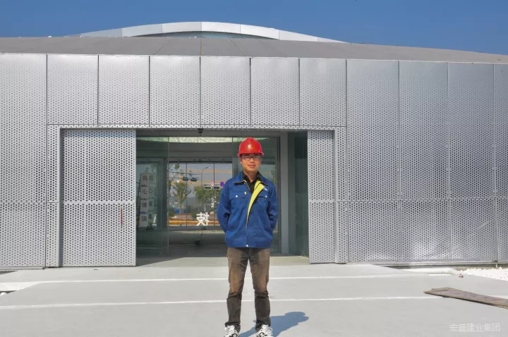 2017年上饒的夏天特別長,雖然日歷已翻到11月3日,但最高氣溫仍然達到27度!駐足于站前大道與鳳凰大道交匯處,映入眼簾是一座碩大的銀光閃閃的圓形建筑---建筑科技文化館。體驗館內(nèi),一個曬得黑不溜秋的青年正在指揮幾師傅最后的收尾。他就是負責建筑科技文化館施工的宏盛建業(yè)一級建造師劉歡。