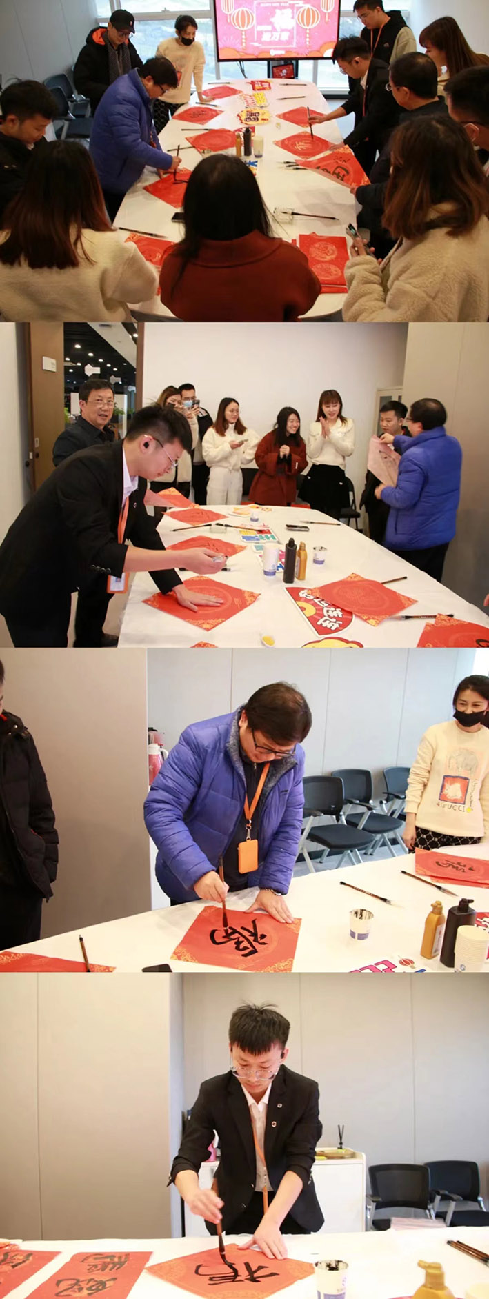 活動現(xiàn)場熱鬧非凡,墨跡飄香,大家紛紛揮毫潑墨,大顯身手,一個個福字躍然紙上,寄托著人們對新春的憧憬和向往。宏盛真的是藏龍臥虎,有些同事觀其力而不失,身姿展而不夸,筆跡流水行云,集團(tuán)財稅管理中心吳清山吳總的墨寶成為了大家爭先搶奪的焦點,也有一些同事是第一次拿起毛筆感受傳統(tǒng)文化的魅力?;顒咏Y(jié)束后大家都拿著自己親手寫的“福”字一起合影,每個人的臉上都洋溢著幸福的微笑。