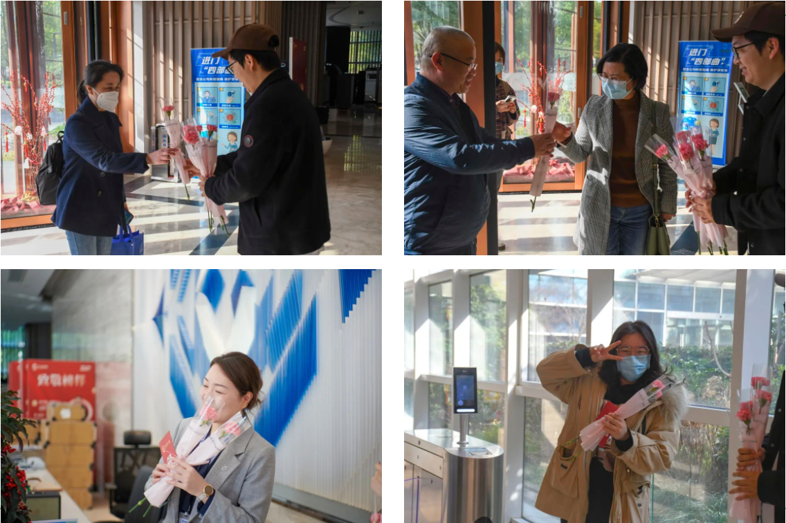 當天,宏盛建業(yè)一樓大廳被布置一新,“宏盛藍”與“巾幗紅”碰撞出鮮明的活力,過節(jié)的喜悅洋溢在女工友們的臉上,她們們手捧鮮花,笑容甜入心坎。員工們紛紛表示,平時工作很忙,也不會給自己過什么節(jié)日,逢年過節(jié)都會收到公司的慰問和禮物,這她們的生活充滿了小驚喜,工作幸福感也大大提升!