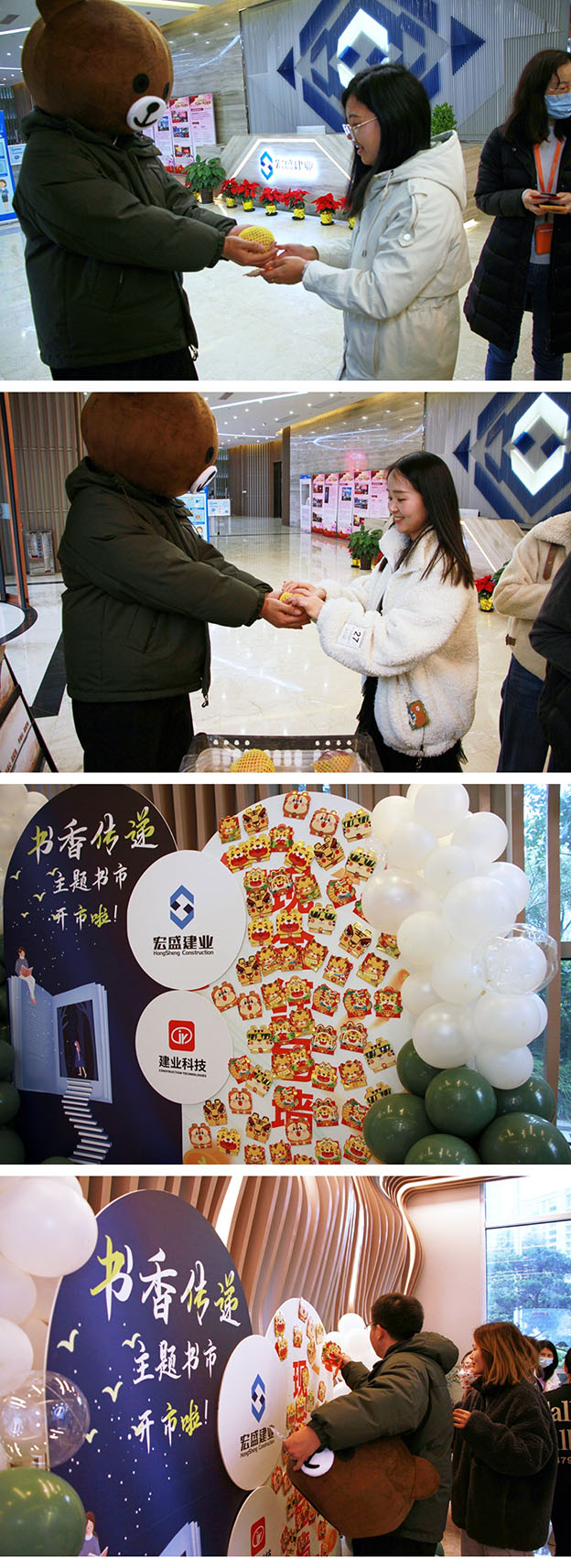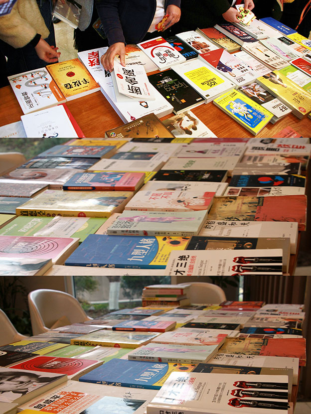 12月24日,在宏盛建業(yè)集團(tuán)總部一樓組織了一場“書香傳遞”主題書市,書市上的書籍都是來自集團(tuán)總部和建業(yè)科技同事們的私人藏書,大家紛紛拿出藏書,以書換券,再憑券在書市開市時兌換一本其他同事的書籍,活動以這樣的方式完成以書換書,知識互通。