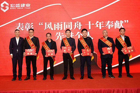 集團董事長周金虎親自為“風(fēng)雨同舟、十年奉獻”特別貢獻獎獲得者們頒獎,并為他們佩戴定制款鉆石司徽。經(jīng)歷輝煌榮耀、無懼坎坷波瀾,感恩其十年如一日,始終如家人般堅守初心、不離不棄、一路相伴。受表彰人員分別是: