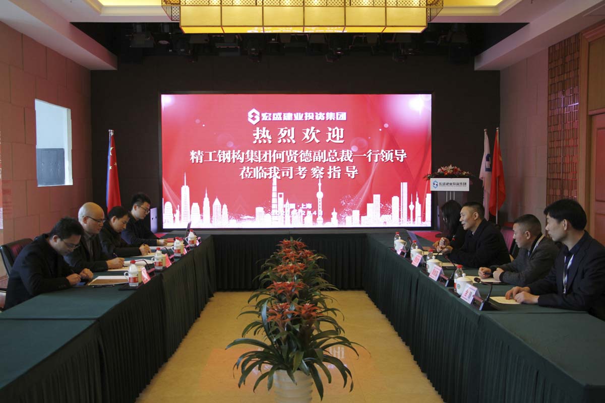 Guide:12月4日,長江精工鋼構(gòu)集團(tuán)副總裁何賢德一行到宏盛建業(yè)上??偛靠疾旖涣鳎瘓F(tuán)董事長周金虎陪同座談。雙方就攜手助推裝配式產(chǎn)業(yè)發(fā)展達(dá)成合作意向,共商未來發(fā)展布局規(guī)劃。