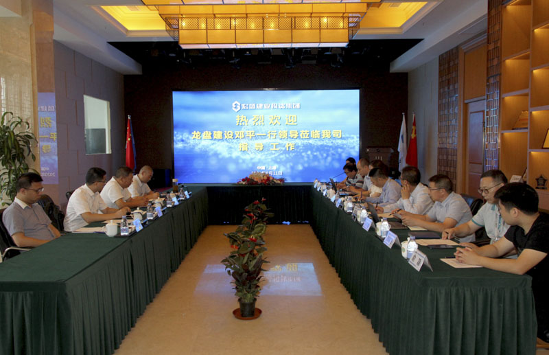 Guide:8月11日,龍盤集團董事長鄧平一行到集團考察交流,集團董事長周金虎陪同座談,雙方就加強合作往來達成一致意見。