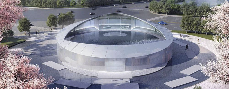 本次活動旨在弘揚(yáng)習(xí)近平生態(tài)文明思想,匯聚綠色發(fā)展新動能,倡導(dǎo)回歸自然綠色簡約新生活。中國(上饒)建筑科技文化館作為活動會場,秉承著綠色建筑理念,以促進(jìn)綠色建筑新技術(shù)、新設(shè)備、新材料應(yīng)用為目的,順應(yīng)了綠色、生態(tài)、健康發(fā)展趨勢,與活動宗旨高度契合。整個建筑科技文化館縈繞在水霧之間,環(huán)道頂點(diǎn)的一汪清水凌駕于整座360度侵入式投影環(huán)幕之上,當(dāng)選手站在舞臺中央之時,水光穹頂折射出溢彩柔光,仿佛置身于水天之間,科技與夢幻融合,歌聲與希冀共飛。
