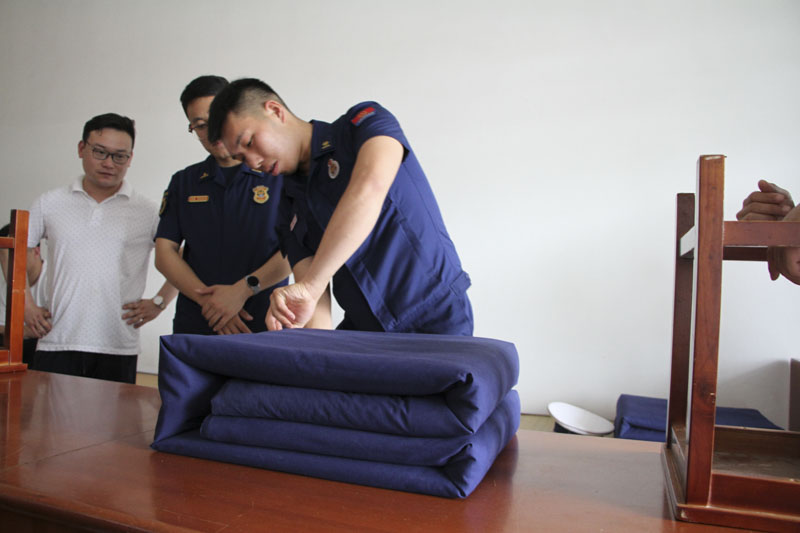 培訓(xùn)結(jié)束后,喬副站長(zhǎng)又帶著我們參觀了整個(gè)救援站,讓我們親自試穿了一下防火戰(zhàn)斗服,并結(jié)合接警出動(dòng)到滅火救援的全過(guò)程進(jìn)行了細(xì)致的講解,參觀內(nèi)務(wù)時(shí),還給我們展示了一個(gè)“豆腐塊”軍被是如何疊出來(lái)的。一整個(gè)下午的時(shí)間,讓全體人員對(duì)消防基本知識(shí)和滅火技能有了更加全面的認(rèn)識(shí)。