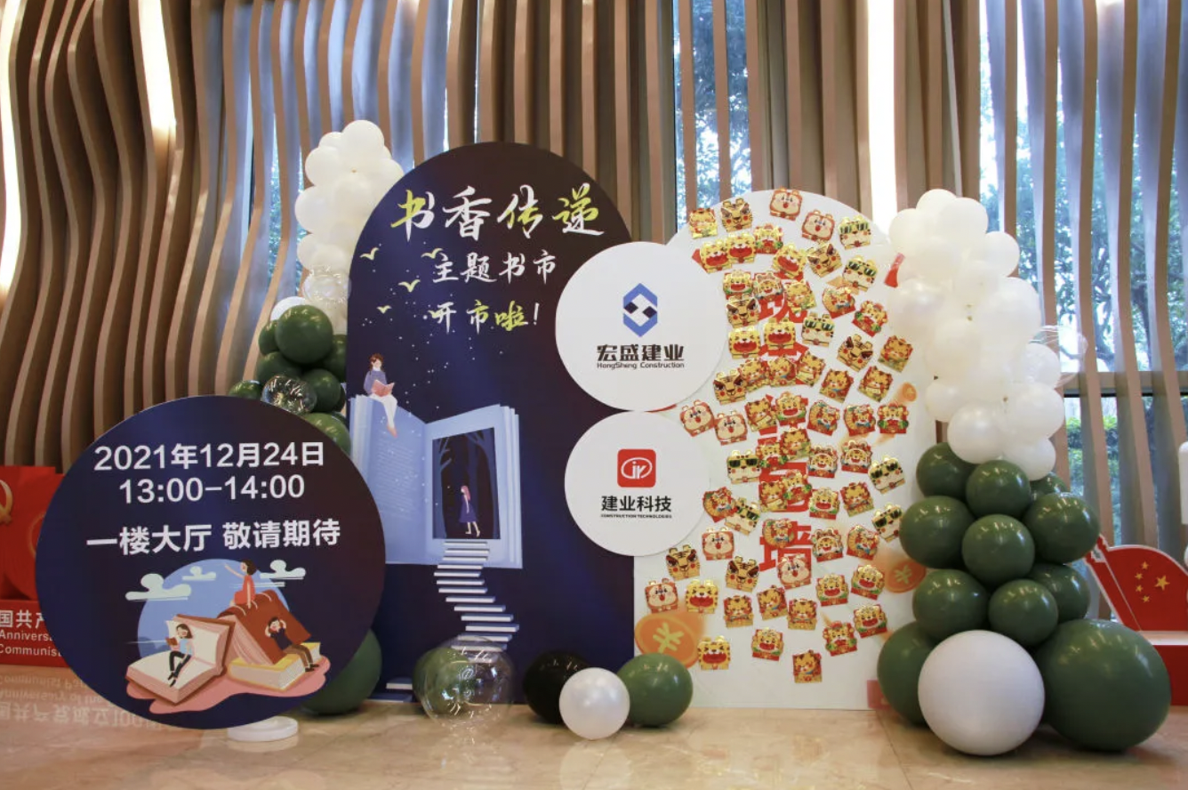 12月24日,在宏盛建業(yè)集團總部一樓組織了一場“書香傳遞”主題書市,書市上的書籍都是來自集團總部和建業(yè)科技同事們的私人藏書,大家紛紛拿出藏書,以書換券,再憑券在書市開市時兌換一本其他同事的書籍,活動以這樣的方式完成以書換書,知識互通。