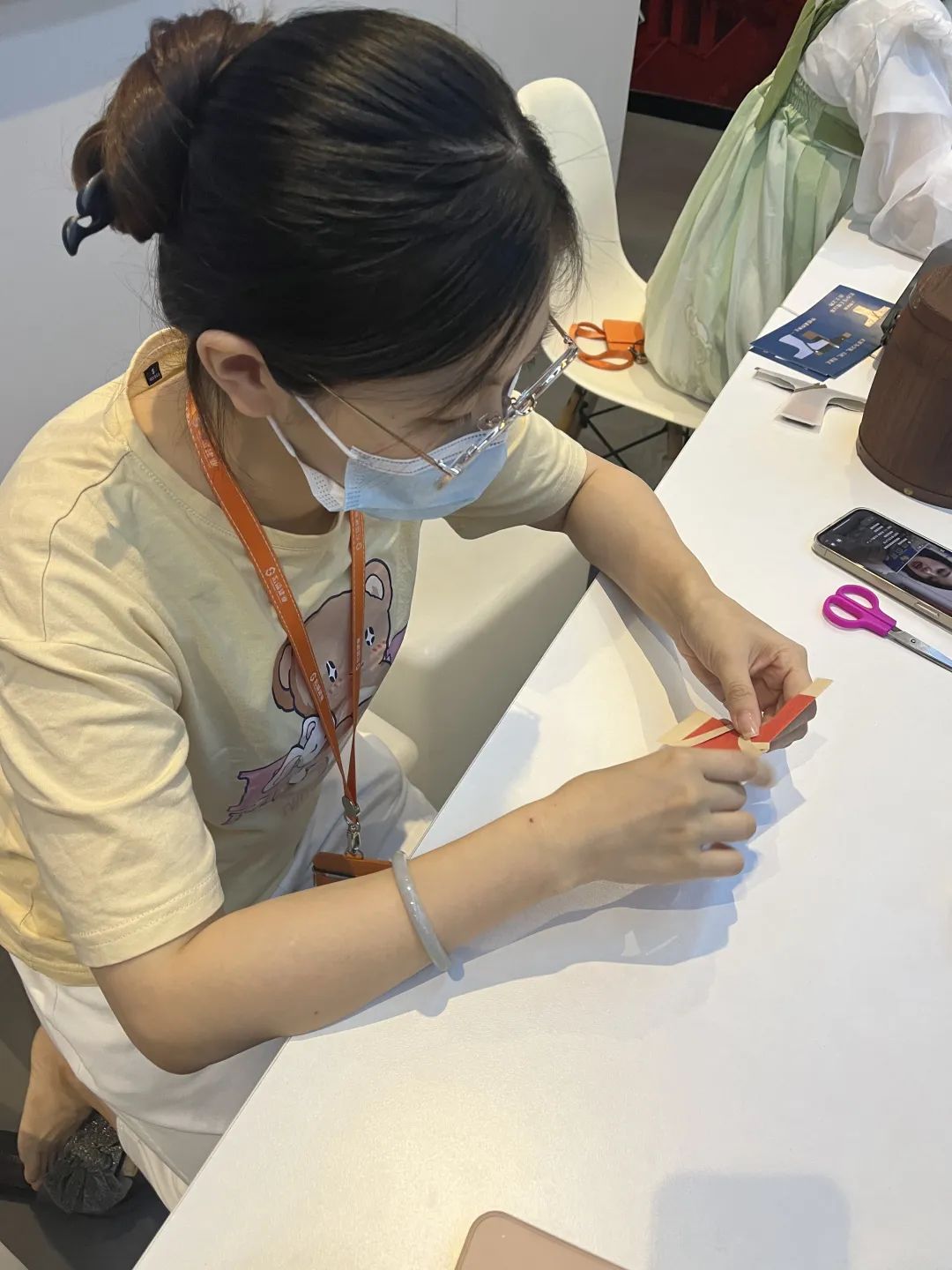 心靈手巧的同事們,照著圖紙,拿起手中已經(jīng)被剪好的圖案進(jìn)行拼接,通過家人們的手,一件件小巧精致的漢服被展現(xiàn)在我們的眼前。