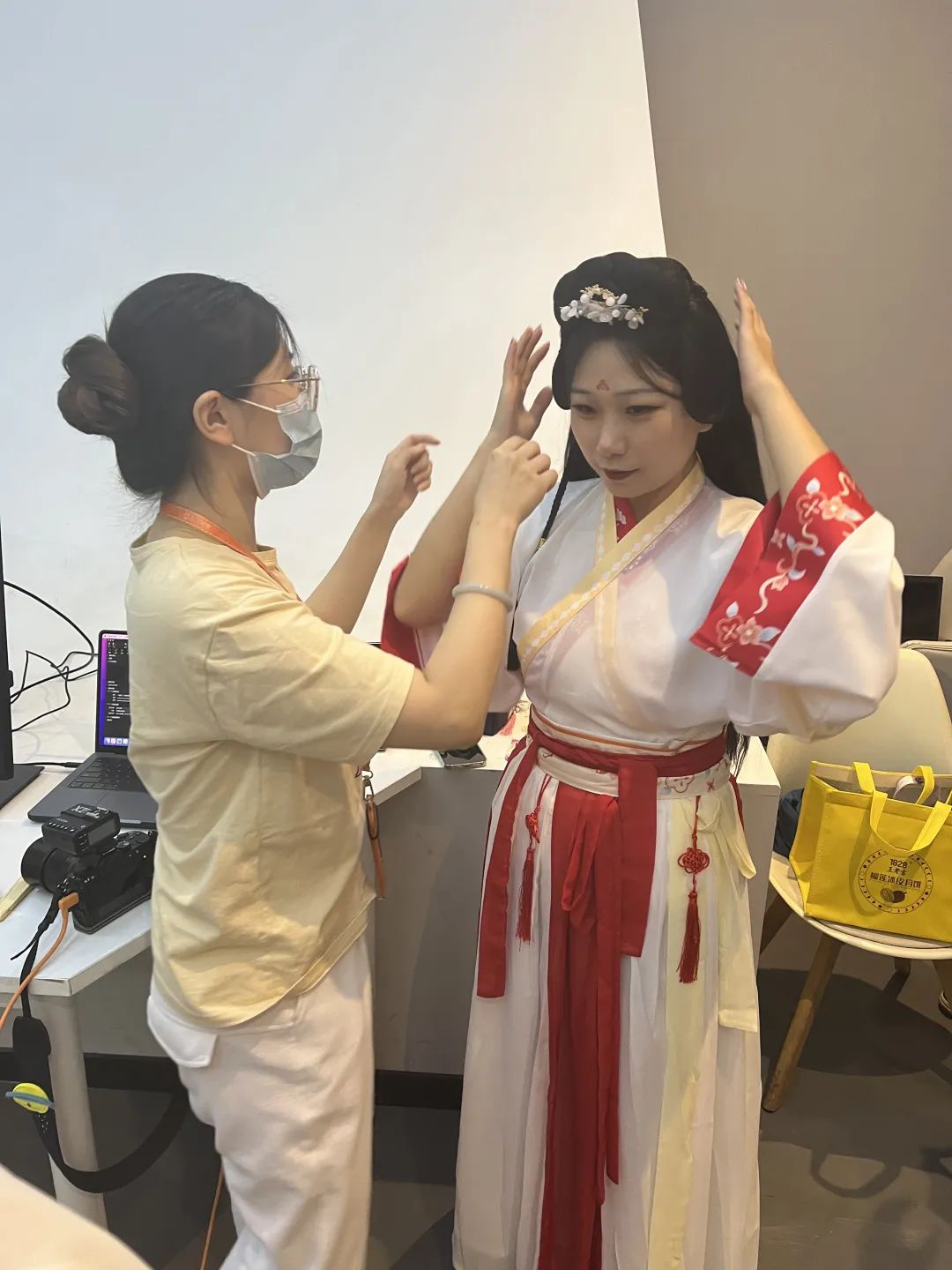 化妝師為已經(jīng)穿戴好漢服的同事整理發(fā)型、裝扮頭飾,攝影師們不斷指導(dǎo)拍攝動作、調(diào)整姿態(tài),一張張屬于宏盛家人們自己的漢服照完美呈現(xiàn)出來。大家都說:“拍的真好,不但美,連古代的那種意境也都體現(xiàn)地淋漓盡致,非常期待成品!”